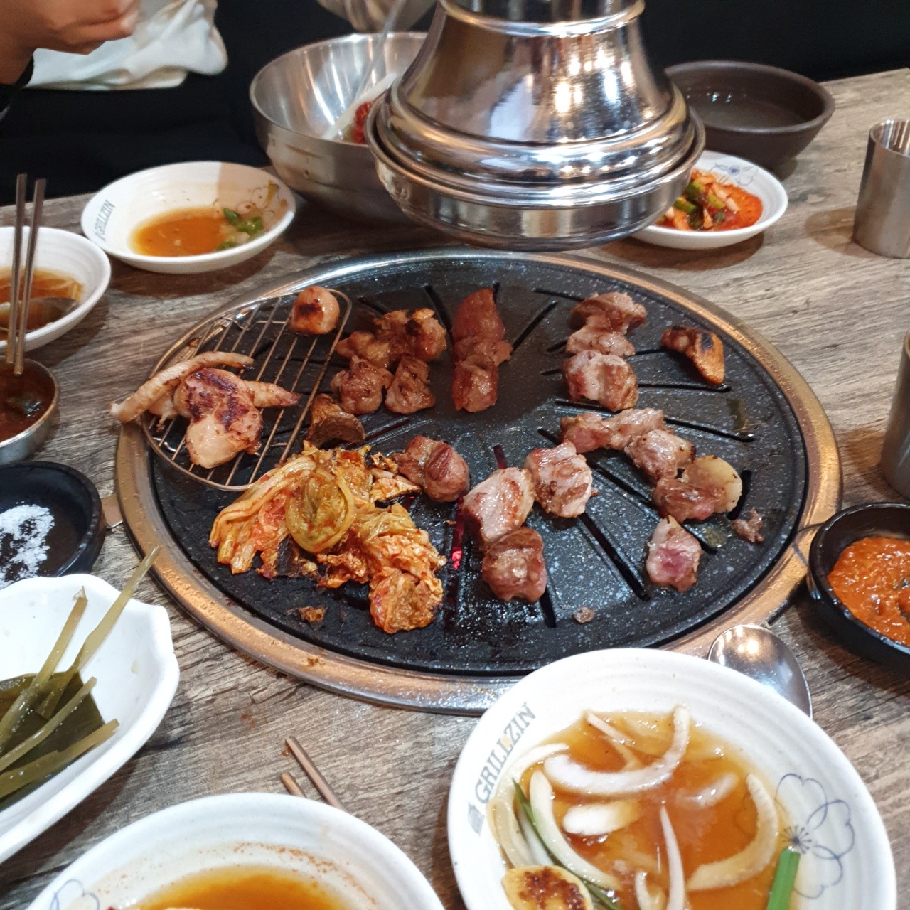 그릴진이 있는 건물 1층에 물갈비집이 있는데, 물갈비는 먹어봤어도 그릴진은 처음이었다. 토요일 저녁시간 사람이 심심치 않게 있었다. 우리는 모듬세트같은 걸 하나 주문했다.